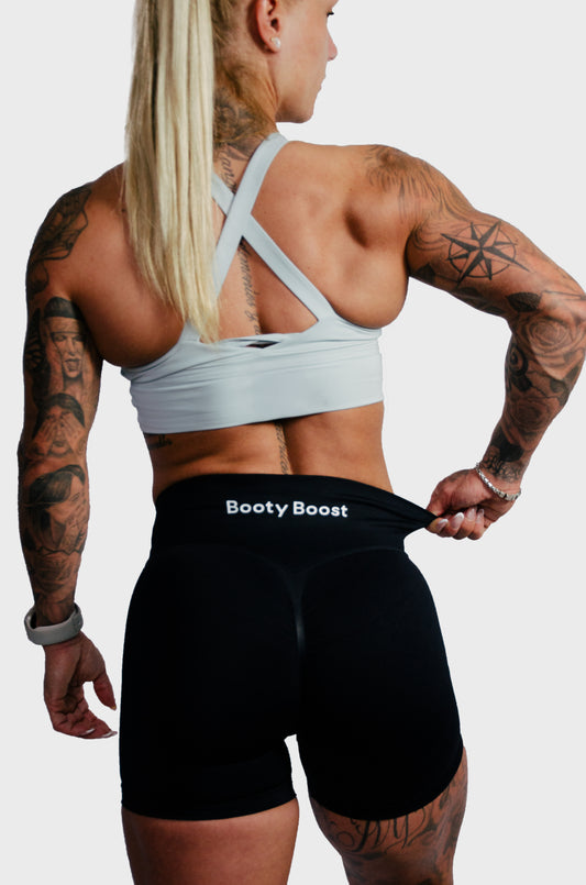 Ontdek de BootyBoost shorts – de perfecte combinatie van comfort en stijl. Dankzij de brede tailleband en anti-slip noppen blijven ze perfect zitten, terwijl je zorgeloos kunt squatten in ons squat-proof design!